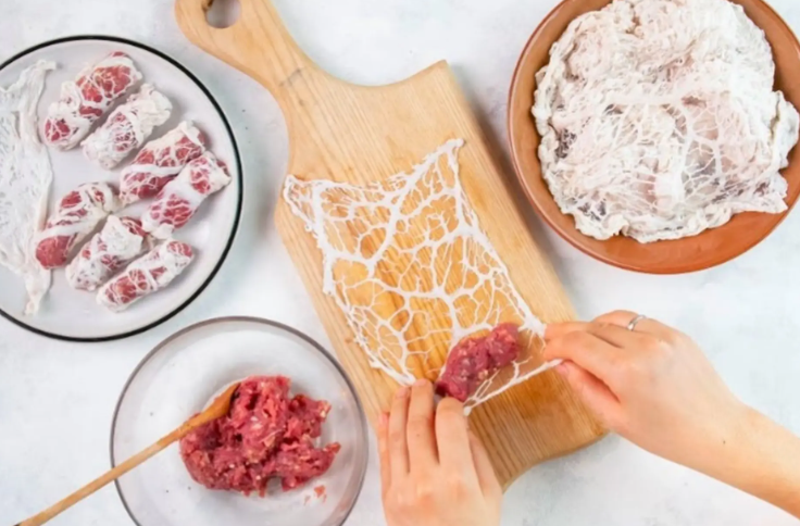 Khi chế biến, mỡ chài tan đều, thấm vào nguyên liệu bên trong, giúp món ăn mềm và bóng đẹp.
