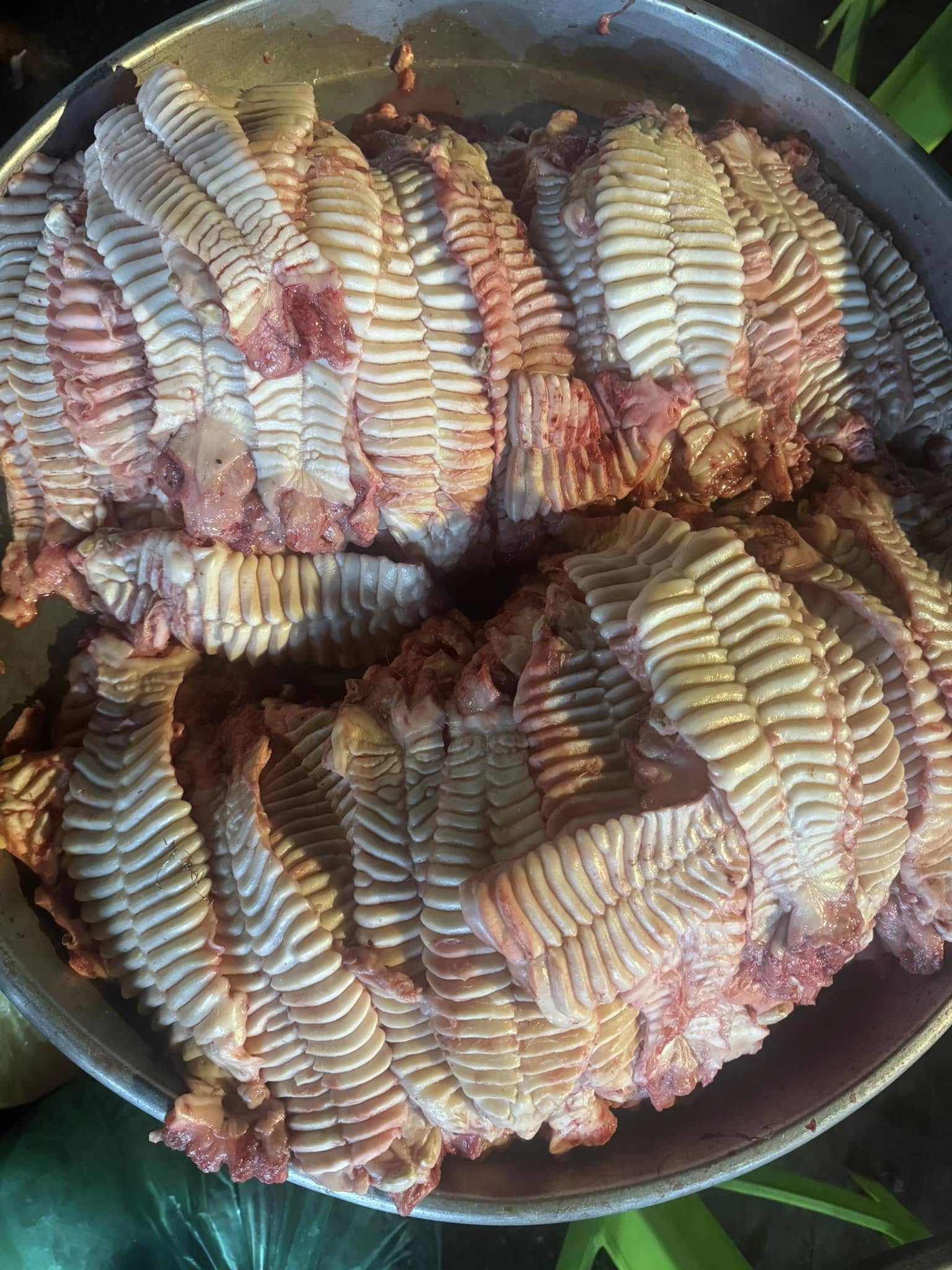 Nướu Heo là phần mô mềm bao quanh chân răng của heo, có cấu trúc dai giòn tự nhiên. Phần này thường được lọc sạch, có màu trắng ngà hoặc hơi hồng, mùi thịt nhẹ đặc trưng. Khi chế biến đúng cách, nướu heo giữ độ giòn, không bở, không tan. Đây là nguyên liệu phổ biến trong các món luộc, ngâm chua cay hoặc trộn gỏi.